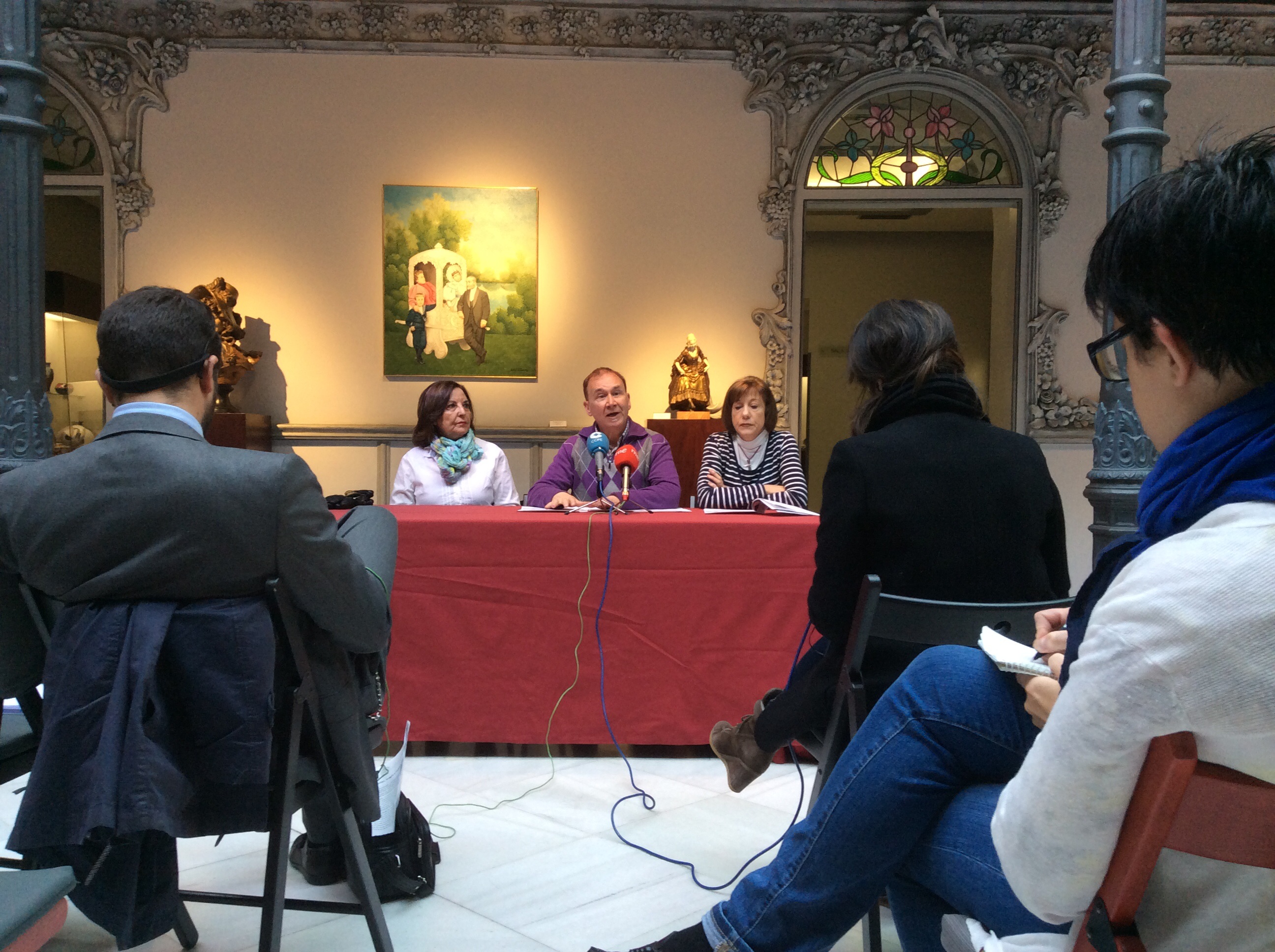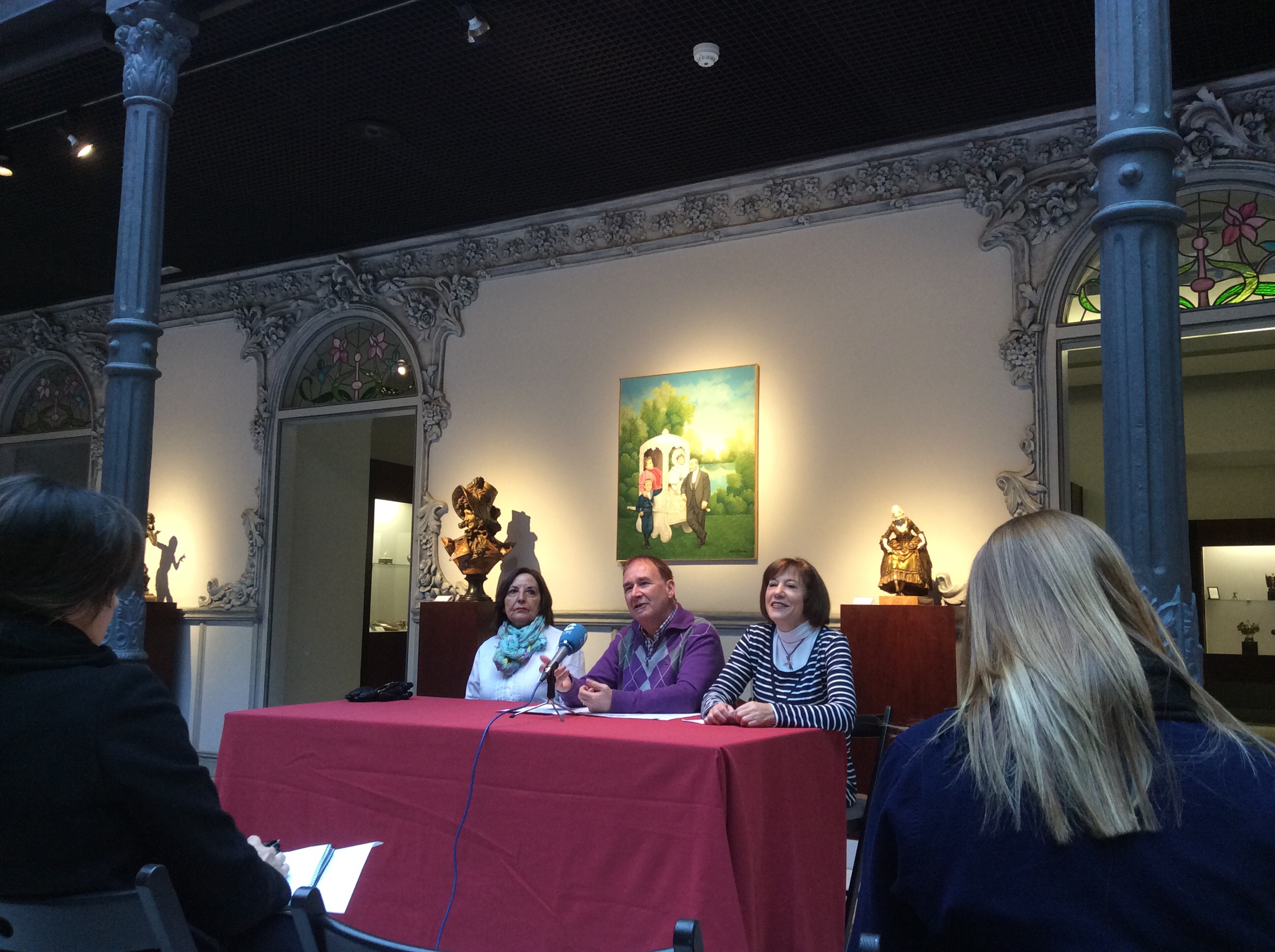Rueda de prensa de la Junta Directiva de la Asociación de Amigos del Museo Casa Lis. Presidente, Miguel Ángel Perfecto, y vocales Justi Marcos Sánchez y María Jesús Lucas García.