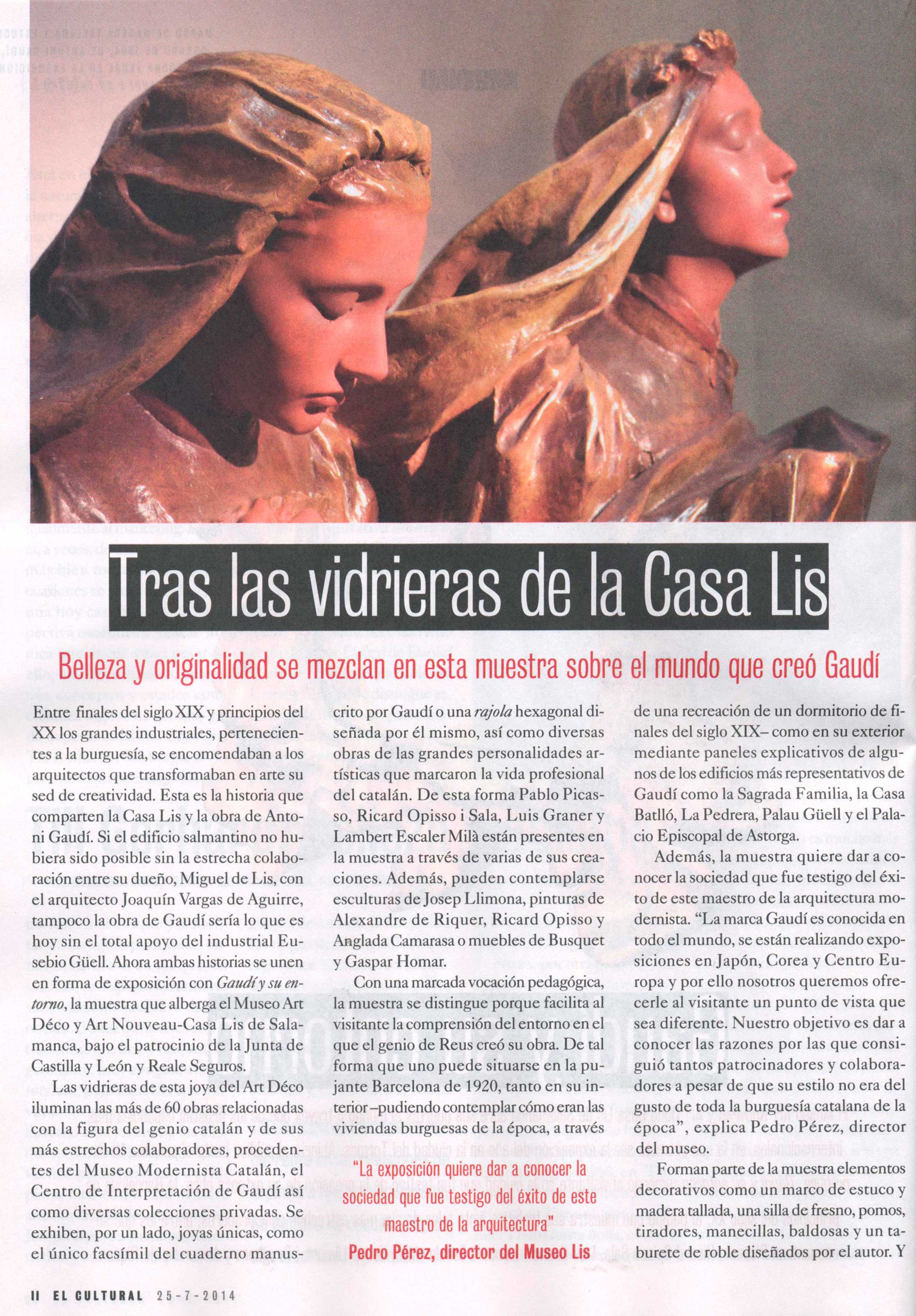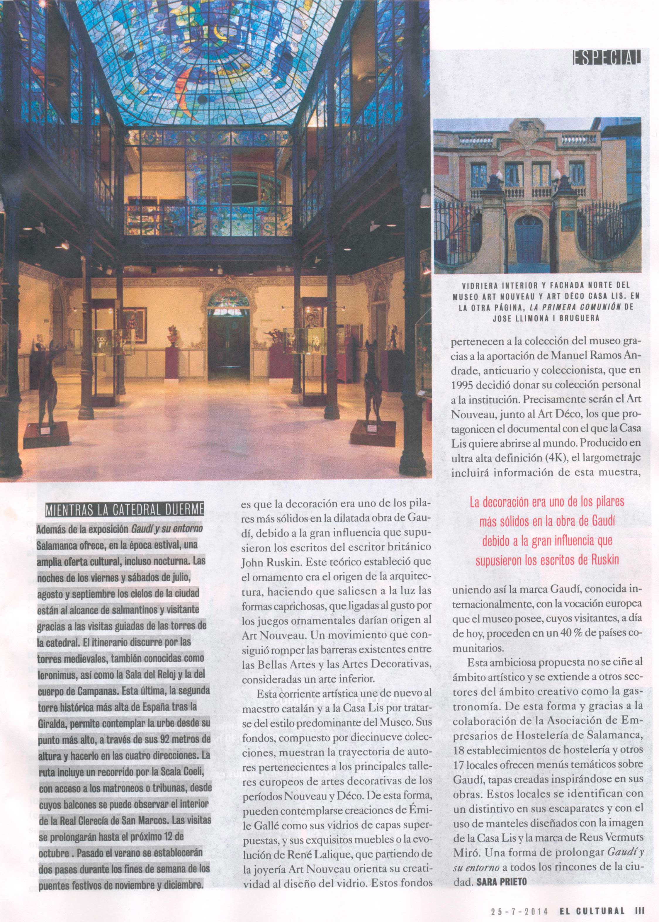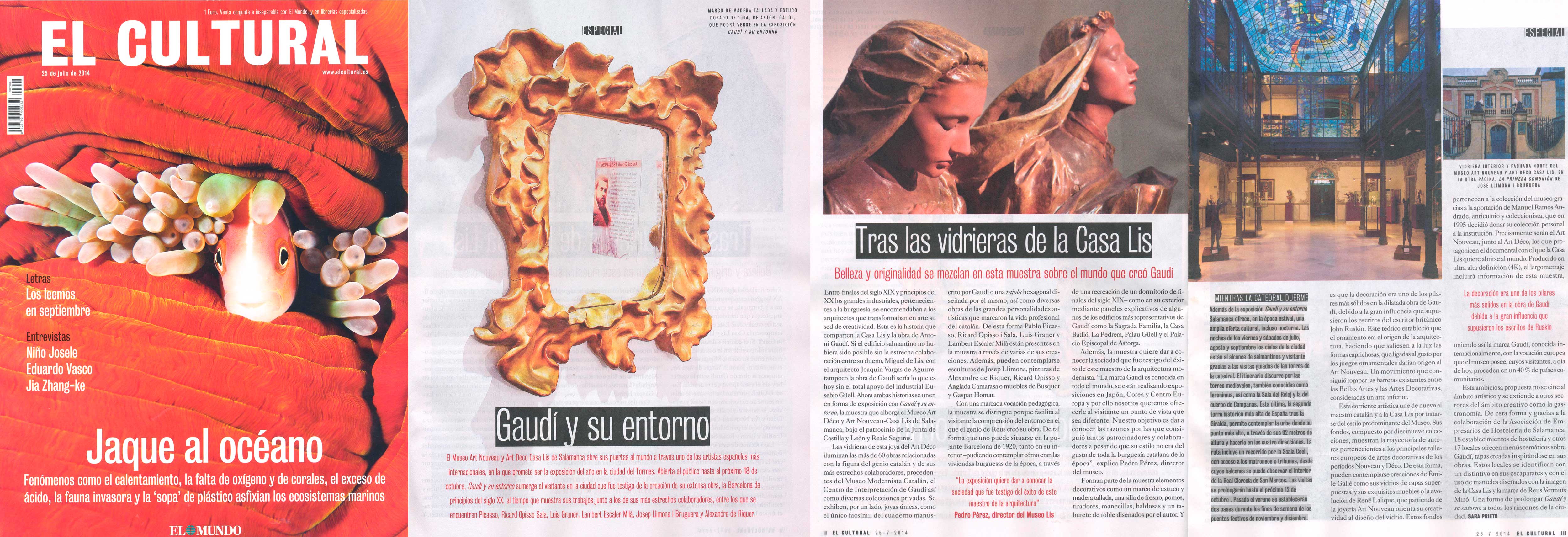 Reportaje sobre la exposición ‘Gaudí y su entorno’ del Museo Casa Lis publicado por ‘El Cultural’ de ‘El Mundo’ el viernes 25 de julio de 2014.