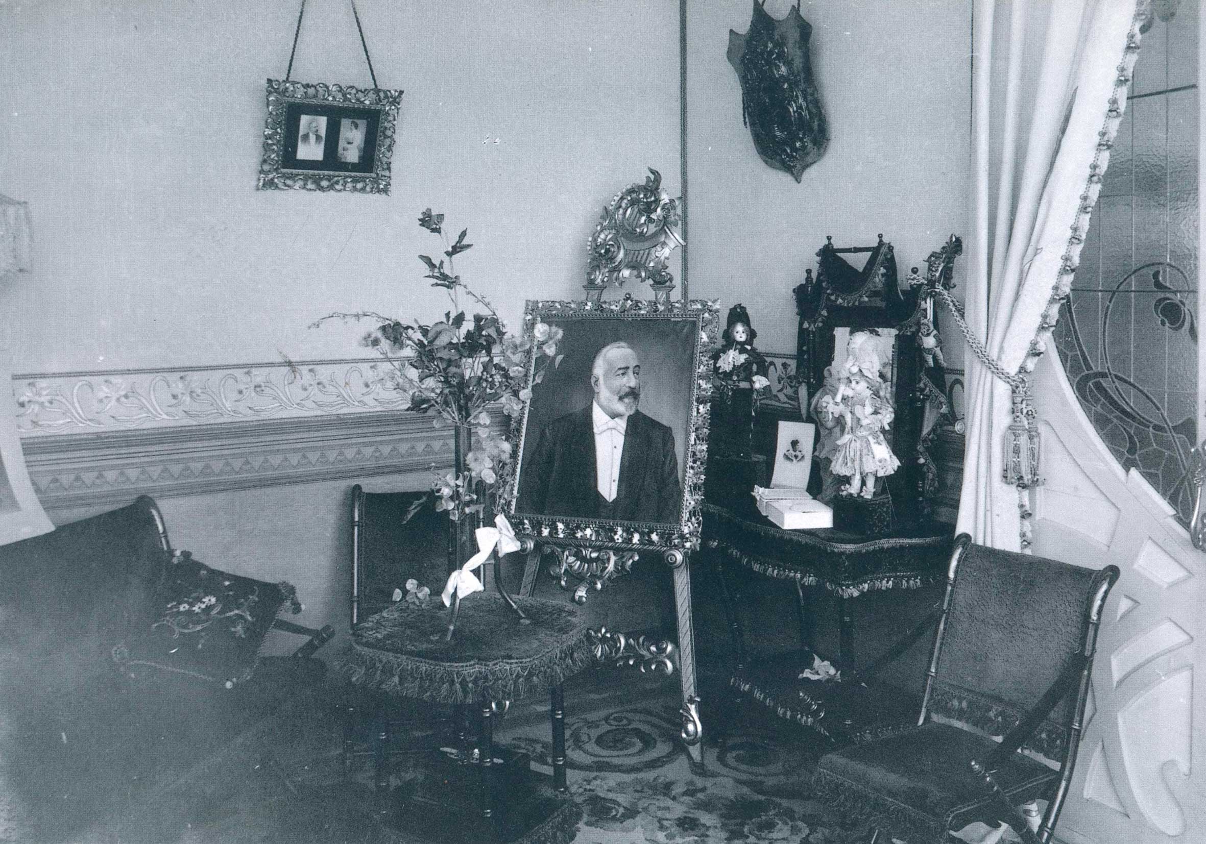Fotografía realizada por Gombau en una de las habitaciones de la Casa Lis en la que ya se encuentra el retrato pintado por Mateos. Archivo Gombau. Filmoteca de Castilla y León.