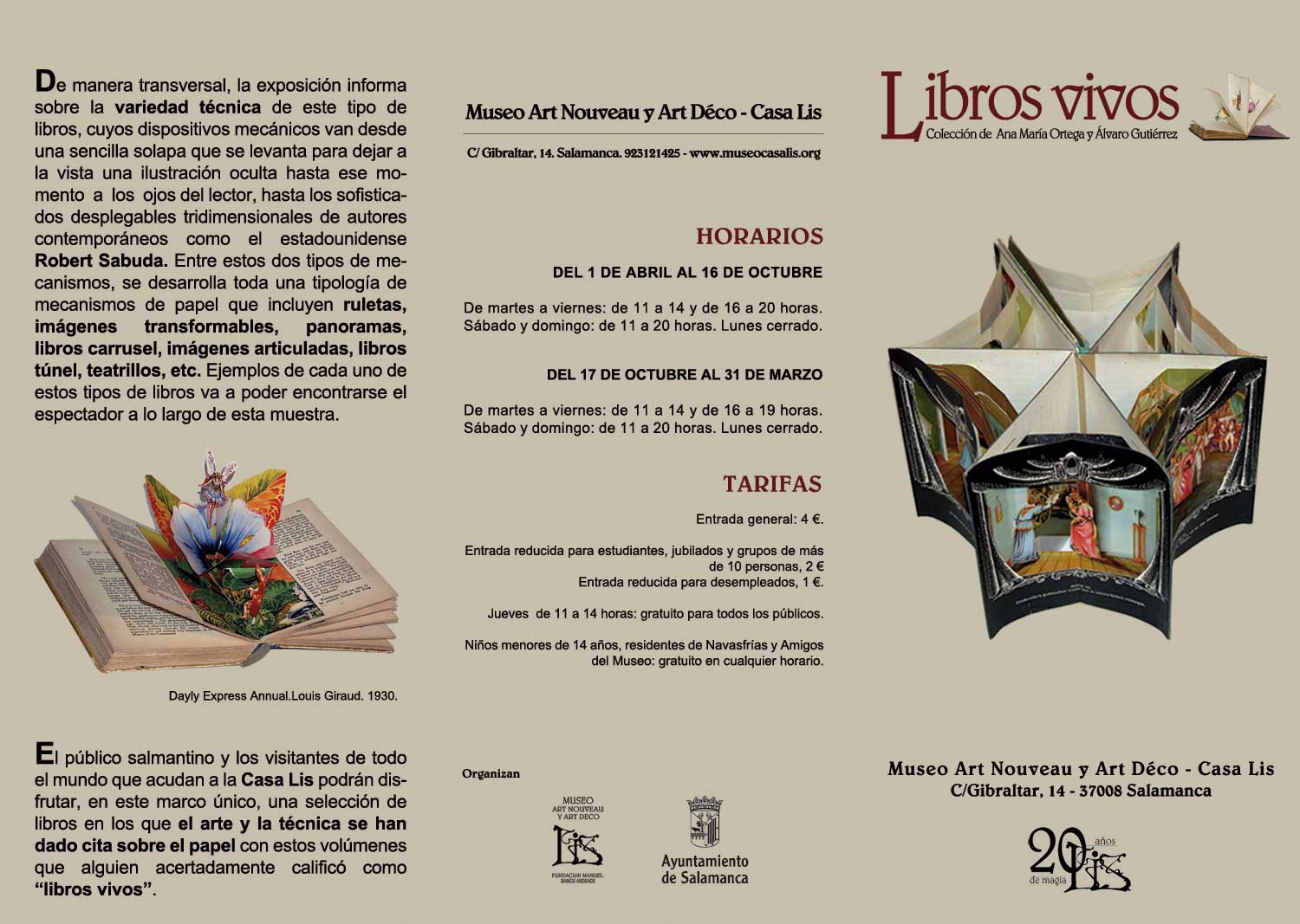 Tríptico de la exposición ‘Libros Vivos’ en el Museo Casa Lis.