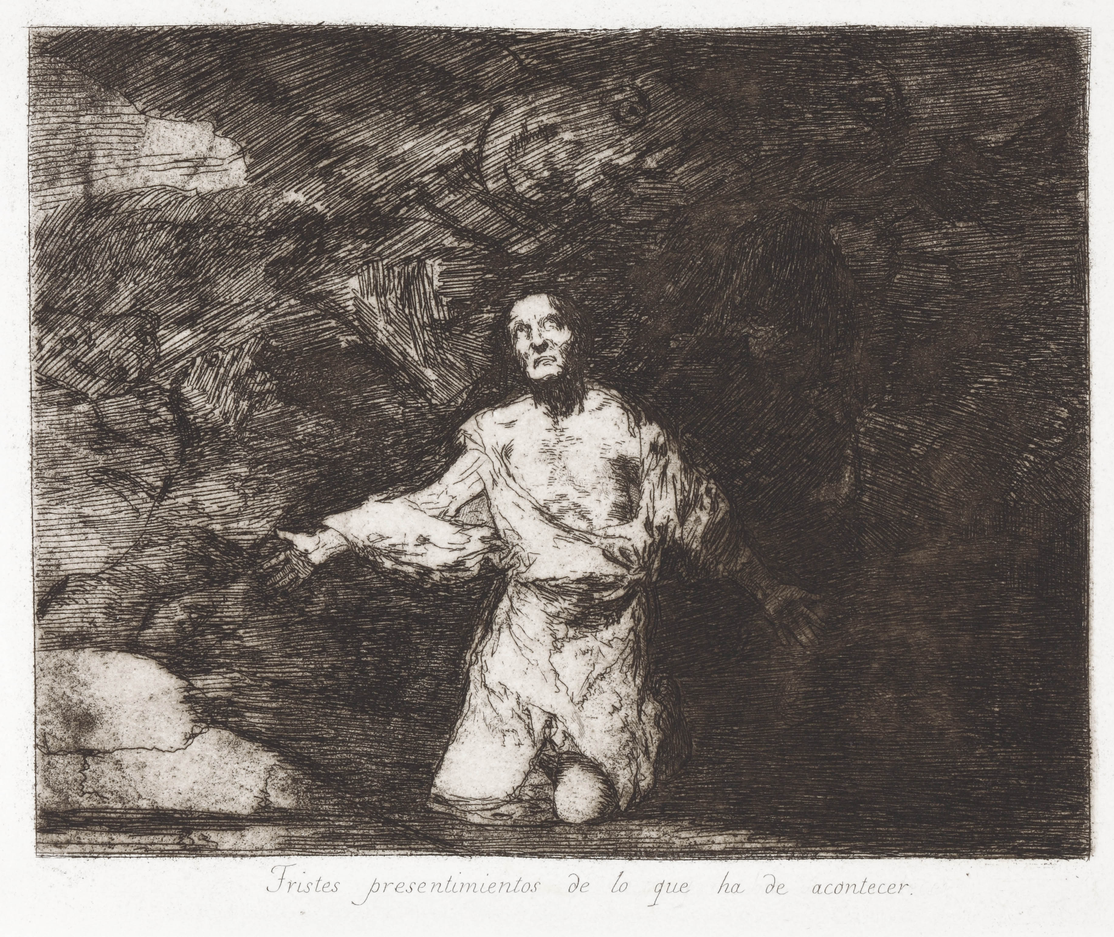 Nº1. Tristes presentimientos de lo que ha de acontecer. 178 x 220 mm. Aguafuerte, punta seca, escoplo y bruñidor.