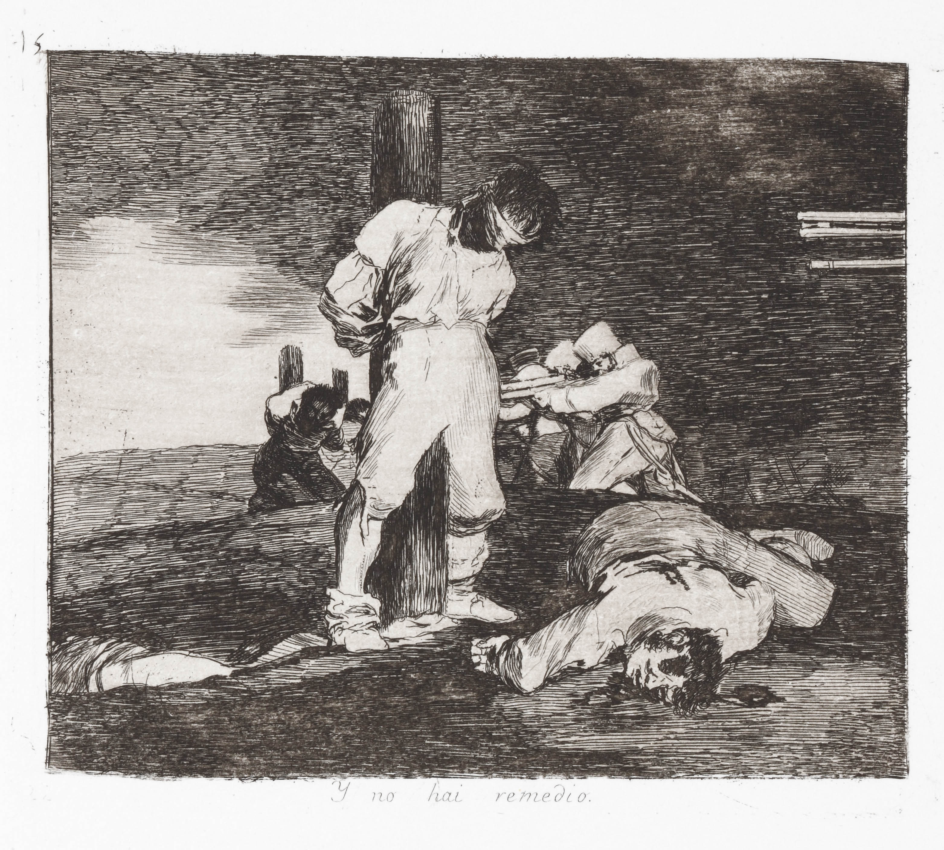 Nº 15. Y no hay remedio. 142 x 168 mm. Aguafuerte, punta seca, escoplo y bruñidor.