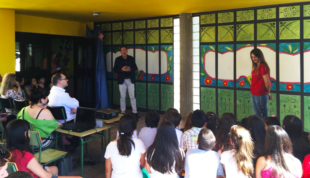 (Miércoles, 20 de junio) La Fundación Manuel Ramos Andrade debe su nombre al donante y mecenas salmantino que generosamente cedió la mayor parte de los fondos que hoy componen la colección del Museo Art Nouveau y Art Déco – Casa Lis. Tras haber pasado casi toda su vida fuera de su tierra natal, Ramos Andrade quiso regresar a sus orígenes y donar a Salamanca sus colecciones. Además, la Fundación Manuel Ramos Andrade, de acuerdo con su voluntad, desarrolla funciones sociales como la concesión de becas de estudio a los niños de su pueblo natal, Navasfrías. Ayer el Colegio Rural Agrupado (CRA) Alto Águeda localizado en esta localidad, Navasfrías, celebró un acto muy especial: un homenaje a Manuel Ramos Andrade, a quien han dedicado el vestíbulo del colegio en el que se han recreado las vidrieras de Casa Lis. Durante el homenaje, que contó con la participación de la directora del centro educativo, Soledad Parrilla Martín, el director del Museo Casa Lis y patrono de la Fundación Manuel Ramos Andrade, Pedro Pérez Castro, el alcalde la de localidad de Navasfrías, Esteban Alfonso Gonzalez, y los escolares, se descubrieron las vidrieras creadas con la colaboración del CFIE de Ciudad Rodrigo y se proyectó un cuento sobre este trabajo, así como otro sobre la vida de Manuel Ramos Andrade.