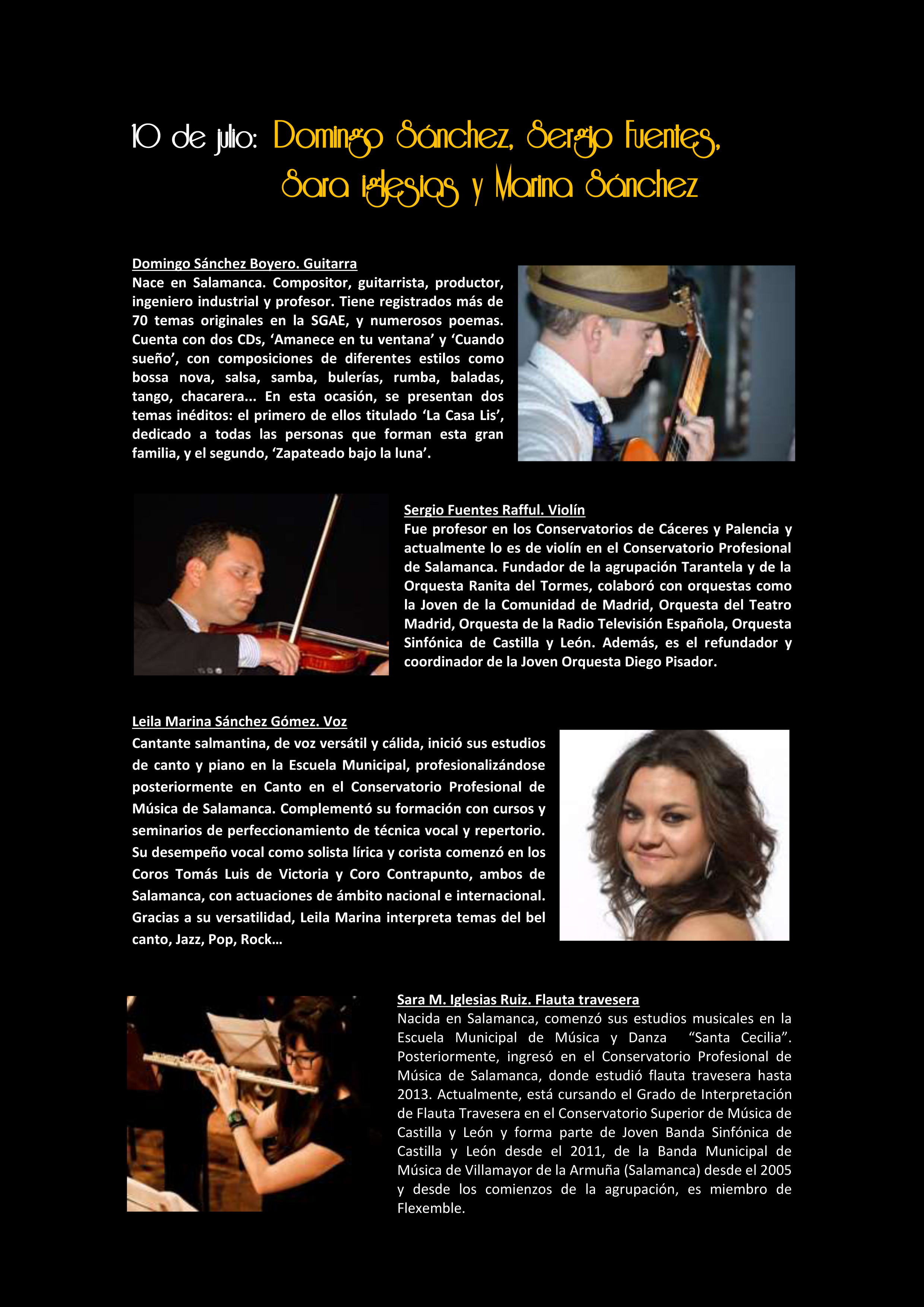 • Viernes 10 de julio: Domingo Sánchez, Sergio Fuentes, Sara Iglesias y Marina Sánchez