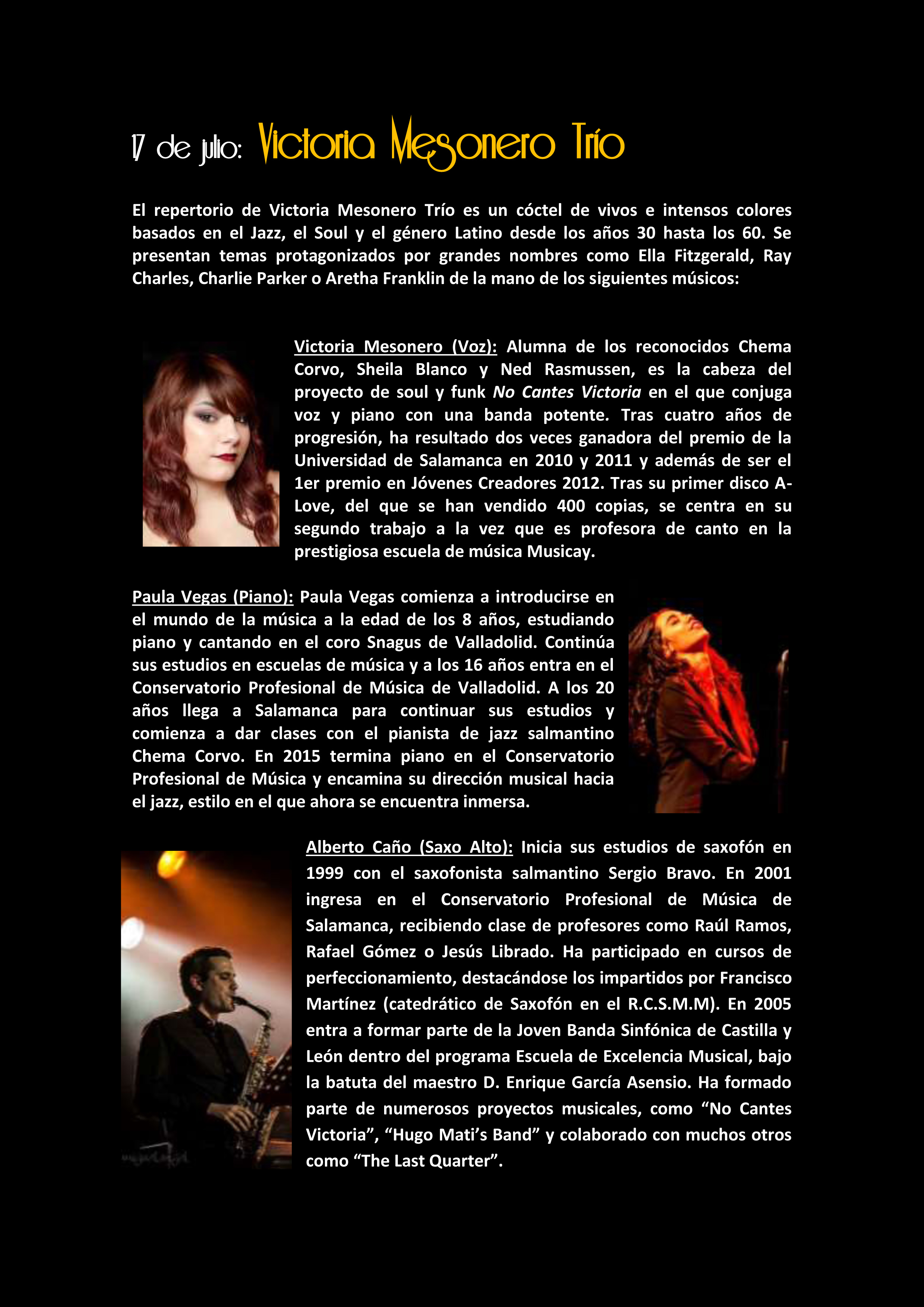 • Viernes 17 de julio: Victoria Mesonero Trío
