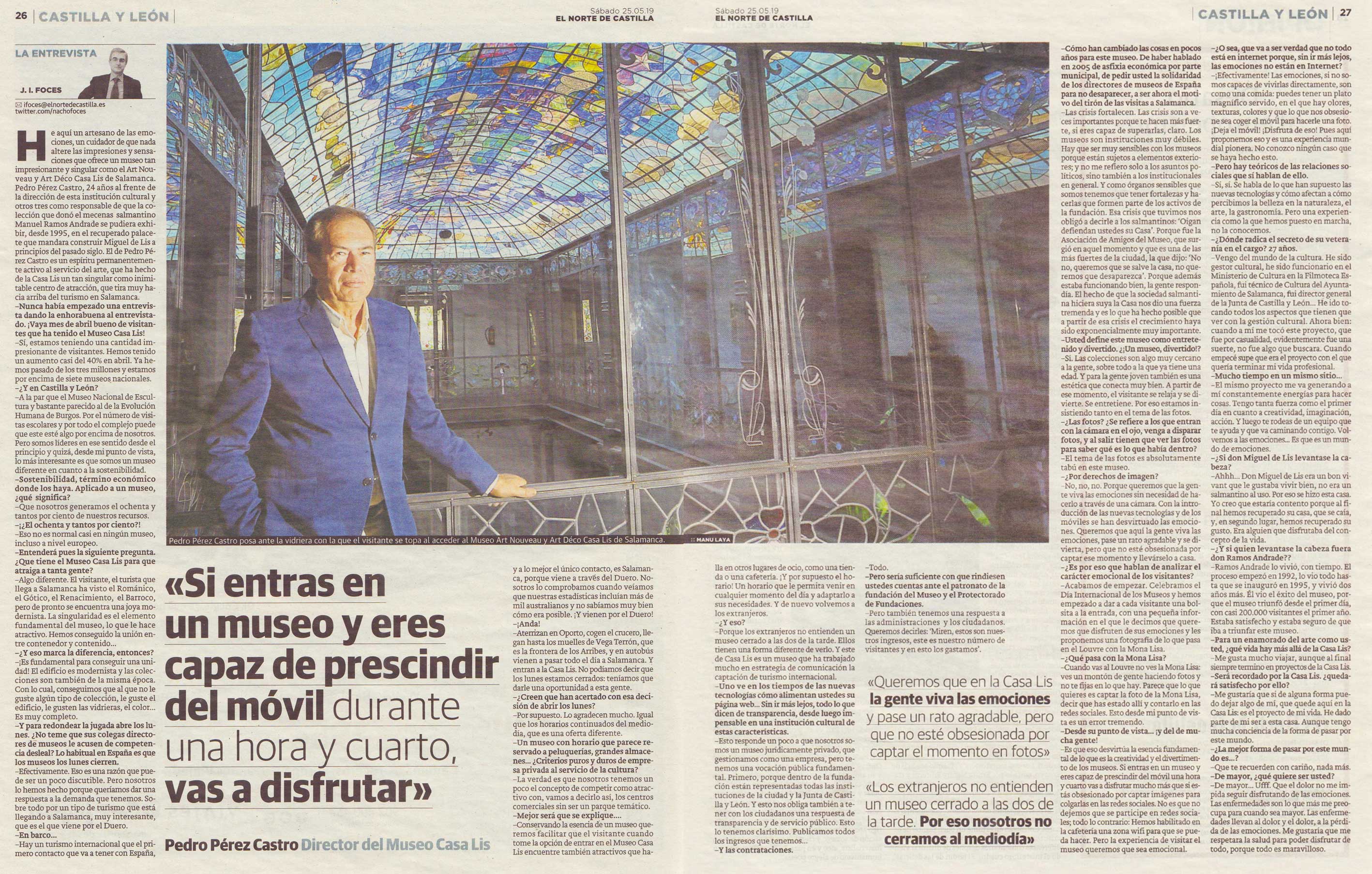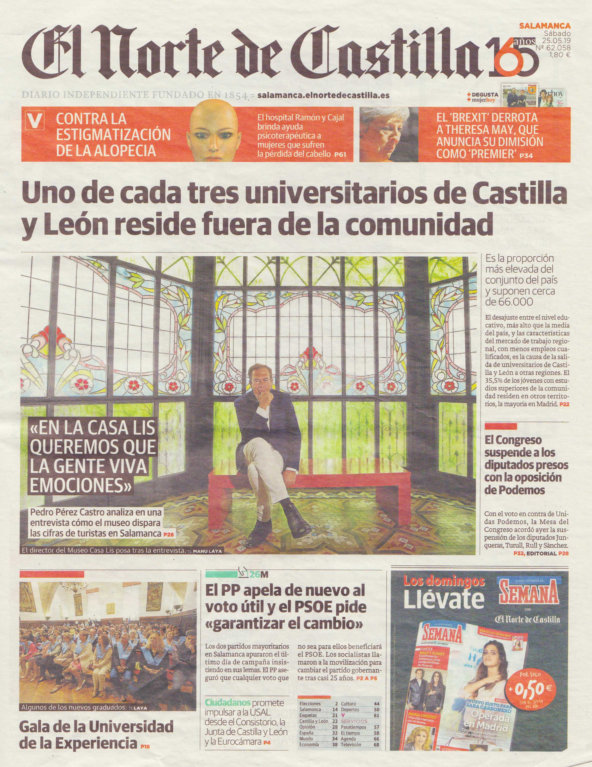 También sobre esta “Experiencia Lis”, así como la trayectoria del Museo desde su creación y los hitos fundamentales de la institución a través de los ojos de su Director, Pedro Pérez Castro, versó la amplia entrevista que le realizó el subdirector de “El Norte de Castilla”, José Ignacio Foces, y que se publicó a doble página con presencia en la portada de la edición del 25 de mayo.