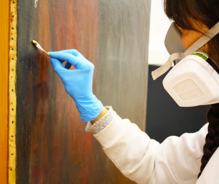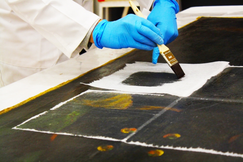 Detalles de la restauración de la pintura de Federico Beltrán Massés «Pareja de Gitanos» realizada por el Departamento de Conservación y Restauración de Feltrero División Arte.