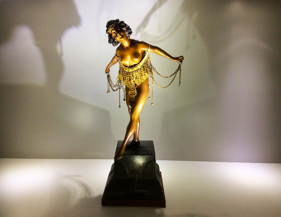Los escultores de bronce vieneses realizaron una serie de figuras eróticas, mujeres inocentes que pueden mostrar su desnudez accionando un mecanismo, para satisfacer el gusto de los nuevos ricos de la época. La mayor parte de estos desnudos son de inspiración Art Nouveau y eran creados como pequeñas esculturas decorativas para las mesas de despacho de la burguesía europea. Destaca entre ellas la “Bailarina Árabe” autómata, así como la “Mujer con túnica” de Carl Kauba, sin duda una de las esculturas más representativos de los Bronces Viena.