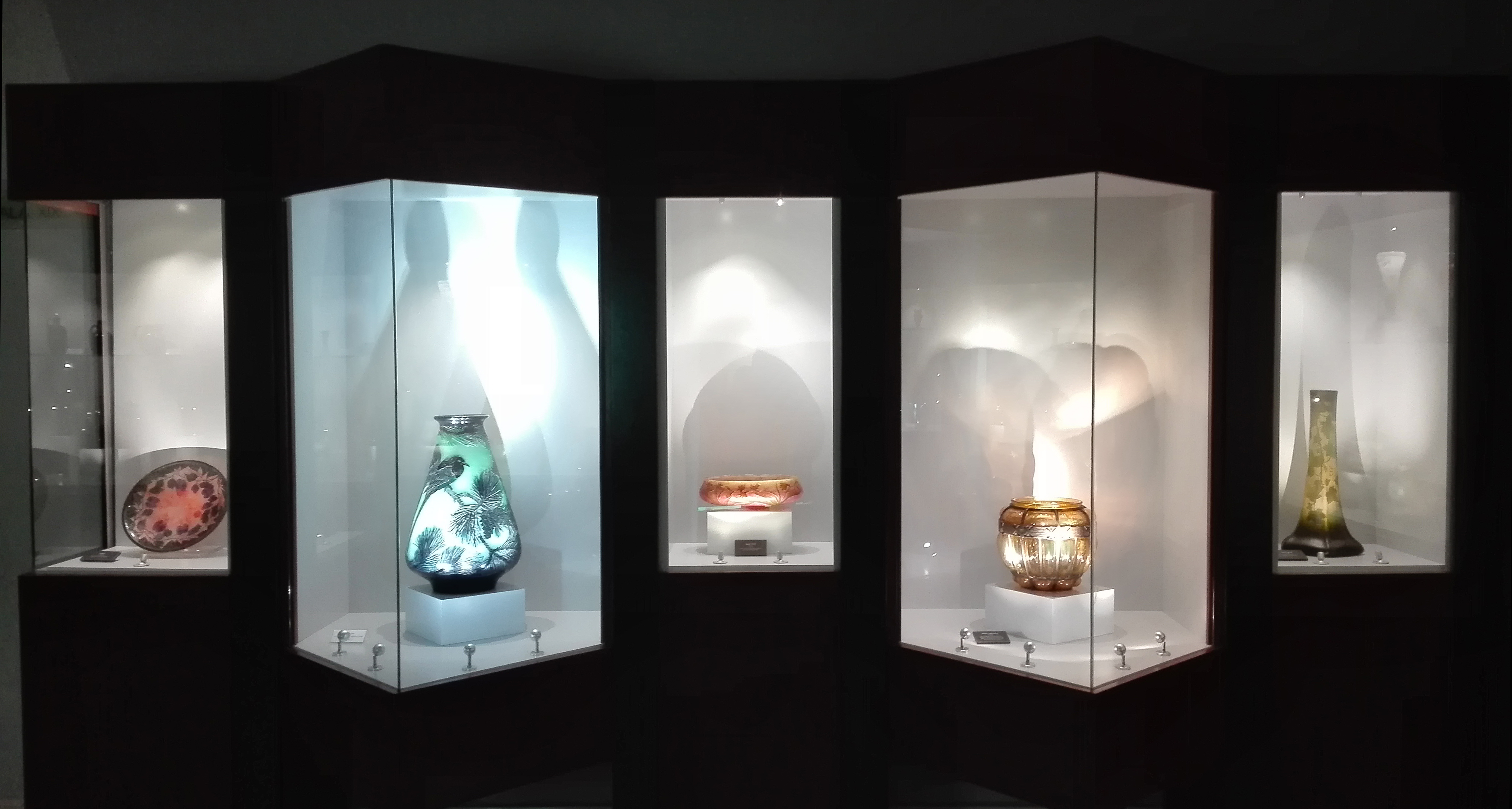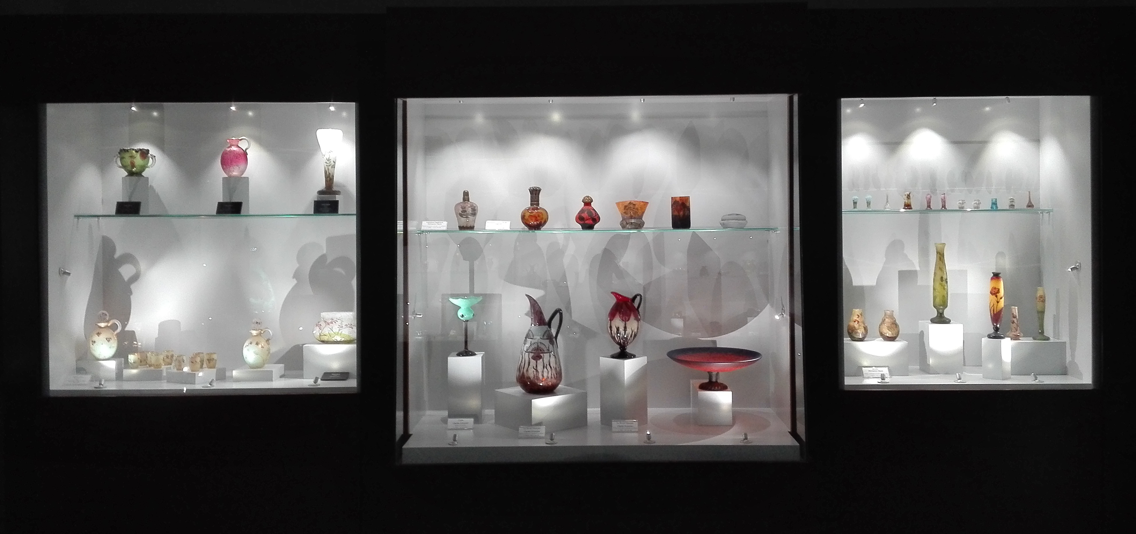 (Salamanca, 12 de abril de 2017) El Museo Art Nouveau y Art Déco – Casa Lis ha realizado la remodelación museográfica de una de sus salas de vidrio modernista, donde se han modificado y mejorado las vitrinas, reubicado gran parte de las piezas y sustituido la anterior iluminación por luz led, lo que permite optimizar su conservación y exhibición. Así, es posible apreciar con mayor detalle los colores, volúmenes y formas de las piezas de vidrio de la Escuela de Nancy que se muestran en esta sala.