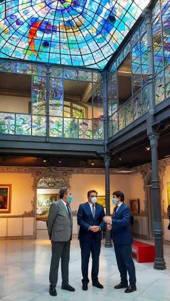(Salamanca, 8 de noviembre de 2021) El Museo Art Nouveau y Art Déco – Casa Lis ha acogido la reunión de trabajo celebrada en el marco del ‘Foro Nacional sobre el Futuro de la Educación‘ promovido por el Gobierno de España, el Parlamento Europeo – Oficina en España y la Comisión Europea en España, evento celebrado en Salamanca los días 8 y 9 de noviembre con la participación de más de 70 instituciones públicas y entidades de todo el país y el objetivo de analizar las oportunidades y los desafíos nacionales y de la Unión Europea en la etapa ‘post pandemia’. El Presidente de la Junta de Castilla y León, Alfonso Fernández Mañueco , y el Vicepresidente de la Comisión Europea, Margaritis Schinas, fueron recibidos por el Director del Museo Art Nouveau y Art Déco, Pedro Pérez Castro, antes de su encuentro de trabajo en la Casa Lis el primer día de la celebración de este evento que también contó con la participación del Alcalde de Salamanca y Presidente del Patronato de la Fundación Manuel Ramos Andrade, Carlos García Carbayo; el presidente del Senado, Ander Gil; el rector de la Universidad de Salamanca, Ricardo Rivero; la delegada del Gobierno, Virginia Barcones; la consejera de Educación, Rocío Lucas, y el director de la Oficina Nacional de Prospectiva y Estrategia, Diego Rubio, entre otros invitados.