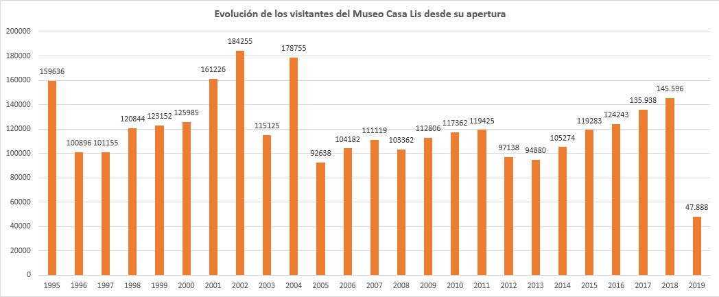 (2 de mayo de 2019) El Museo Art Nouveau y Art Déco acaba de superar la cifra de 3 millones de visitantes desde su apertura en 1.995. La Casa Lis, que ha mantenido y consolidado su crecimiento hasta convertirse en uno de los museos más visitados de la comunidad de Castilla y León y que se ha convertido en un activo patrimonial con gran poder de atracción de turistas, ha rebasado esta cifra gracias al acusado incremento de visitantes que ha experimentado durante el mes de abril de 2019: un 38,6% respecto al mismo mes del año anterior. Mientras en abril de 2018 visitó la Casa Lis un total de 14.549 personas, lo que supuso una recaudación en concepto de venta de entradas de 27.570 euros, en 2019 esta cifra ha ascendido a 20.169 personas, incrementándose también la recaudación por venta de entradas, que ha alcanzado los 36.976 euros, un 34,1%.
